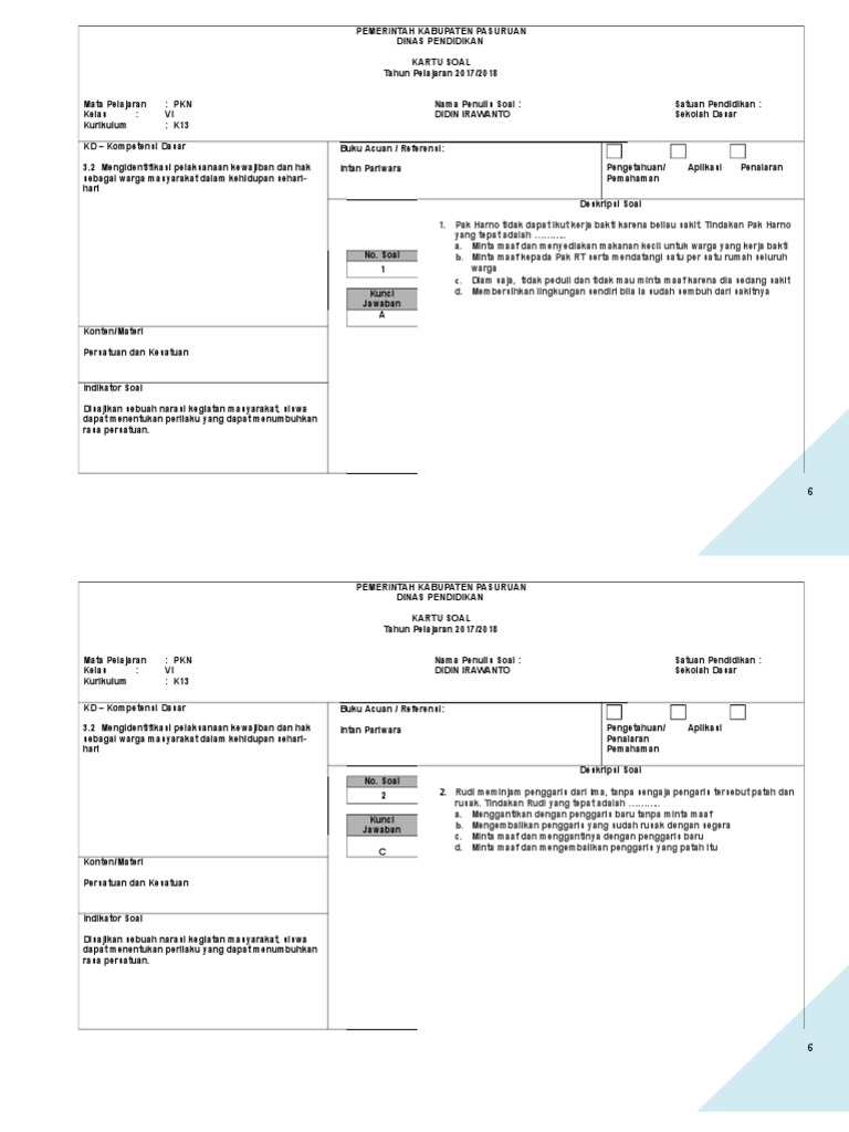 Kartu Soal Ppkn Uas Semester 1 Kelas Xi from data03.123doks.com Soal soal uas ganjil kelas 3 sd semester 1 pelajaran pai, pkn, ips, ipa, matematika, b. Contoh soal uas sejarah kelas x semester 2 kurikulum 2013 beserta jawaban. Soal pkn kelas 6 sd bab 4 peran. Pada kesempatan kali ini aku bakal membagikan perangkat silabus sekolah menengah kejuruan (smk) dengan jurusan pkn kelas xi yang didalamnya telah dilengkapi mulai dari semester. Sobat pengajar smp/mts, pada posting sebelumnya telah admin bagikan contoh soal pendidikan kewarganegaraan kelas vii untuk guru sekolah mene. Halo sobat carasunda.com, senang rasanya saya bisa berbagi informasi kembali dengan anda. Soal pkn kelas xi ini sangat cocok untuk digunakan sebagai alat untuk mengukur pengetahuan siswa tentang materi yang dia dapat di semester 2. Materi pkn kelas xi semester 2.